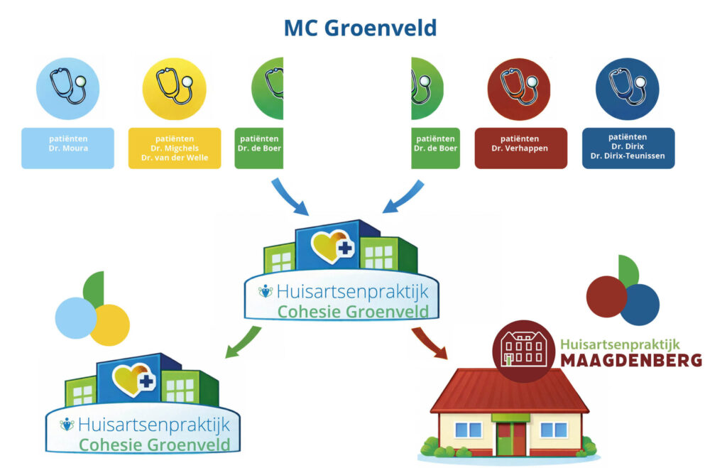 Per 1 april 2026 worden de patiënten van de 5 praktijken van MC Groenveld weer gesplitst, maar nu in tweeën: