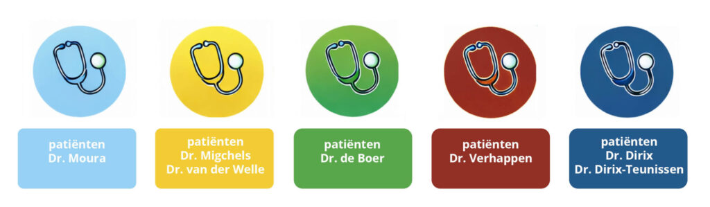 De patiënten van deze 5 praktijken zijn 1 oktober 2024 overgenomen door Cohesie en samengevoegd in Huisartsenpraktijk Cohesie Groenveld.